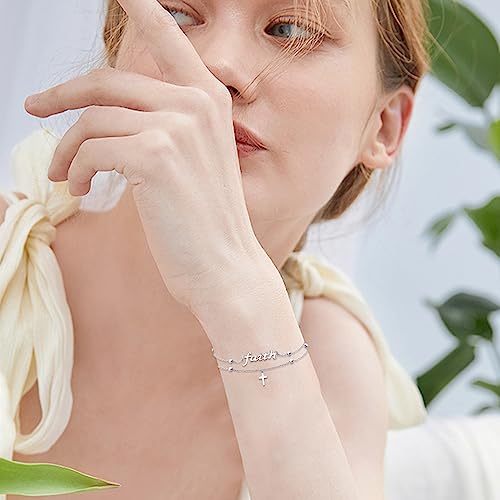 faith Bracelet,S925 Sterling Silver Faith Cross Double Layer Bracelets Christian Jewelry for Women 5