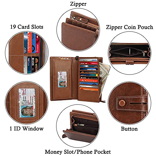 More information about FT FUNTOR Women's Big Fat RFID Blocking Wallet Leather Zip Around Clutch Large Phone Organizer Wristlet