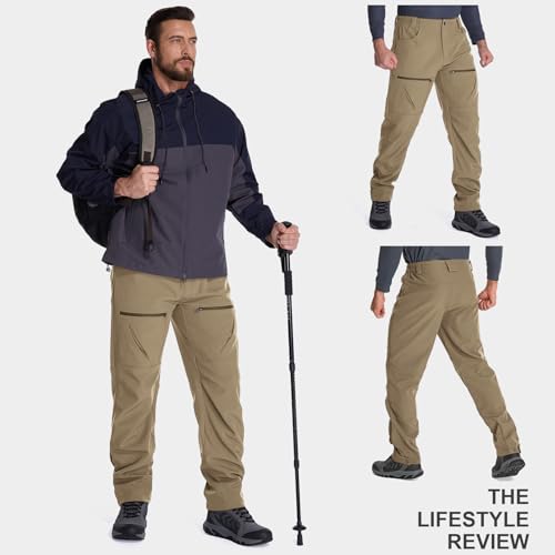 • Winter hiking pants men: 4 Secured Pockets can keep your phone, wallet, key, tactical gears or other accessories for ultimate safely, convenience and efficiency while moving. Freedom of movement - Stretch Spandex Softshell Pants featured with articulated knees provides great flexible.