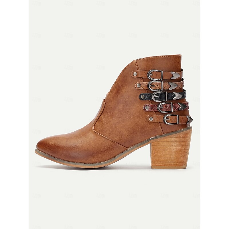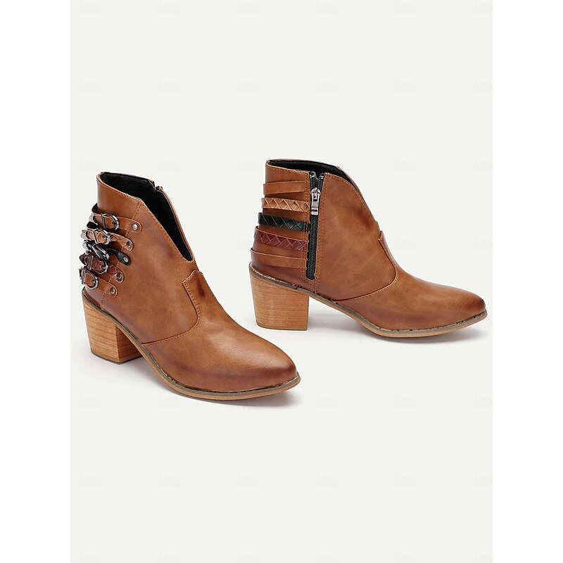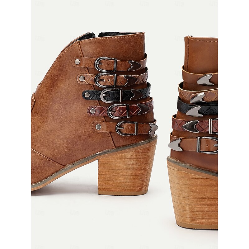 More information about Women's Brown Ankle Boots with Multi-Buckle Detail, Block Heel, and Western Style - Perfect for Casual Outings and Everyday Wear
