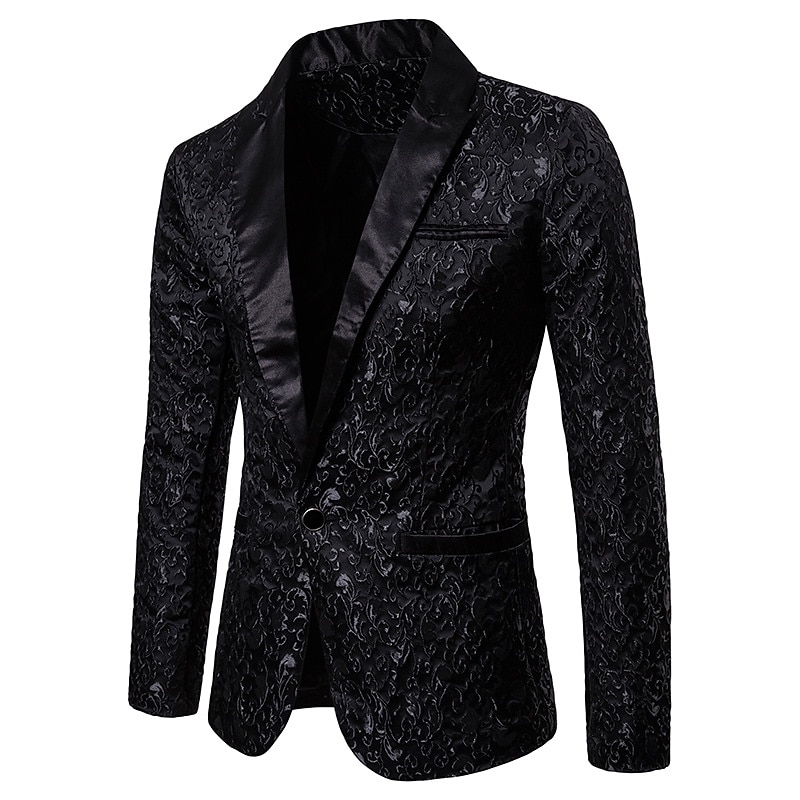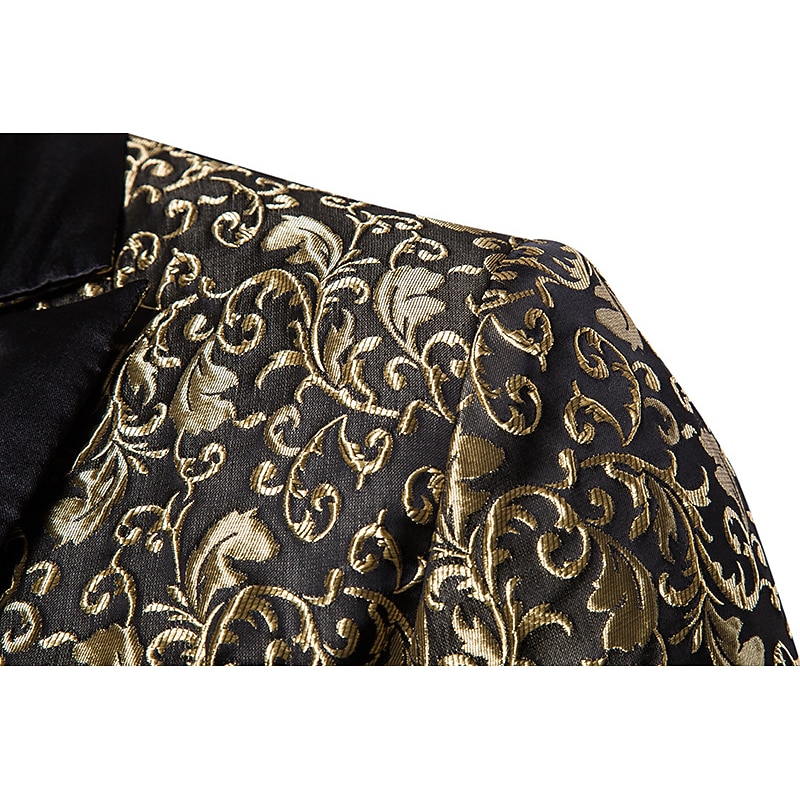 More information about Men's Jacket Blazer Street Business Thermal Warm Breathable Pocket Jacquard Fall Winter Floral Streetwear Elegant Peaked Lapel Regular Cotton Regular Fit Black White Red Gold Jacket