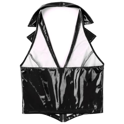 Women's Patent Leather Wetlook Crop Tank Top Zip Up Front Halter Tops Vest for Party Festival 6