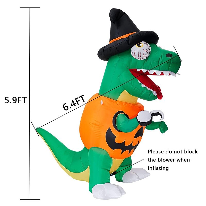 6ft Halloween Outdoor Inflatable Pumpkin Dinosaur Combo, Inflatable Yard Decoration, Built-in LED Lights for Garden/Patio/Holiday/Party 8