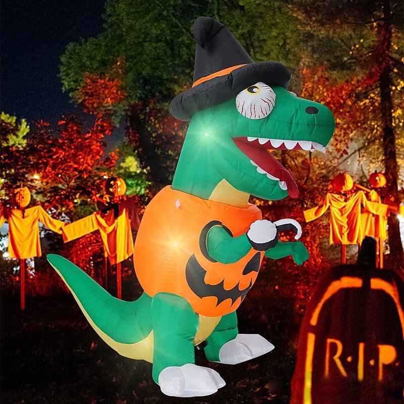 6ft Halloween Outdoor Inflatable Pumpkin Dinosaur Combo, Inflatable Yard Decoration, Built-in LED Lights for Garden/Patio/Holiday/Party 7