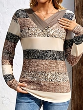 More information about Women's T Shirt Graphic Geometric Color Block Vintage Stylish Classic Long Sleeve V Neck Regular Tops Daily Buttons Print Asymmetrical Brown Fall Winter