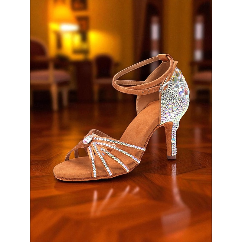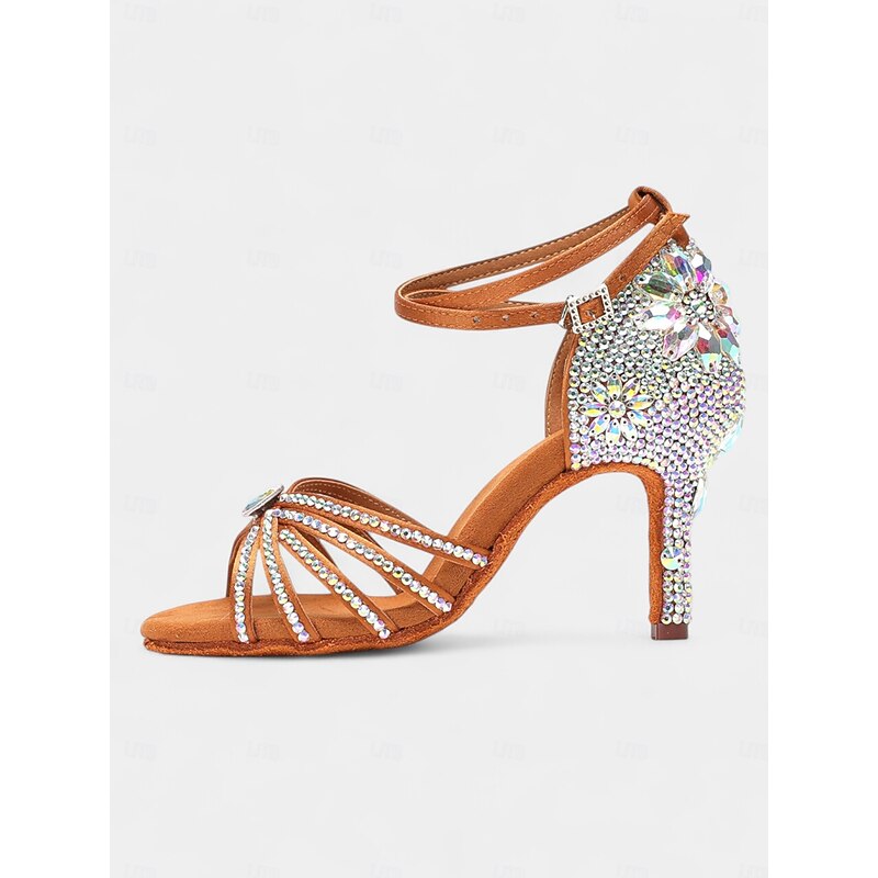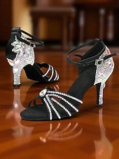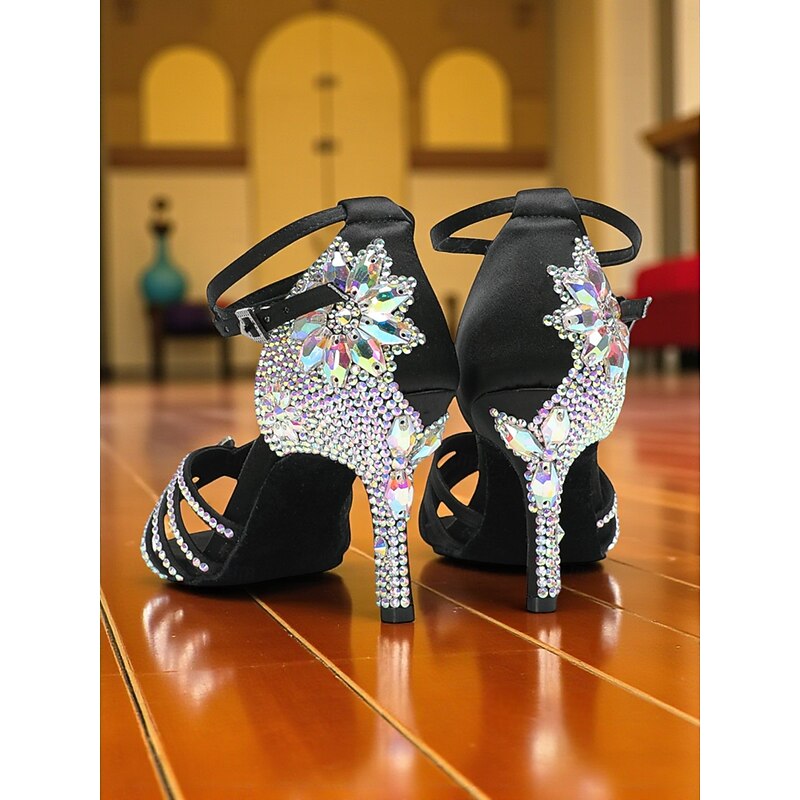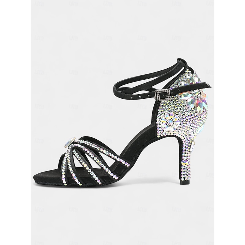 More information about Women's Black Rhinestone Latin Dance Shoes - Sparkly Ballroom Party Heels with Ankle Strap for Salsa, Rumba and Evening Events