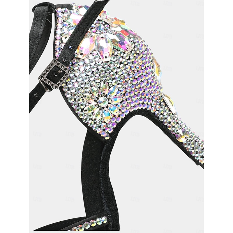 Women's Black Rhinestone Latin Dance Shoes - Sparkly Ballroom Party Heels with Ankle Strap for Salsa, Rumba and Evening Events 1