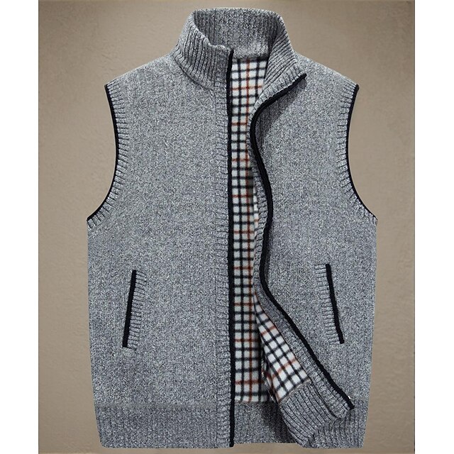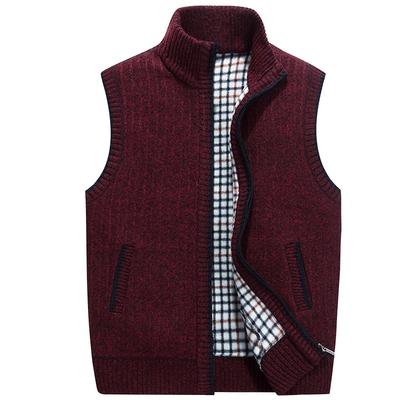More information about Men's Sweater Vest Cardigan Zip Sweater Sweater Jacket Fleece Sweater Knit Knitted Solid Color Stand Collar Modern Contemporary Outdoor Casual Clothing Apparel Winter Black Wine S M L