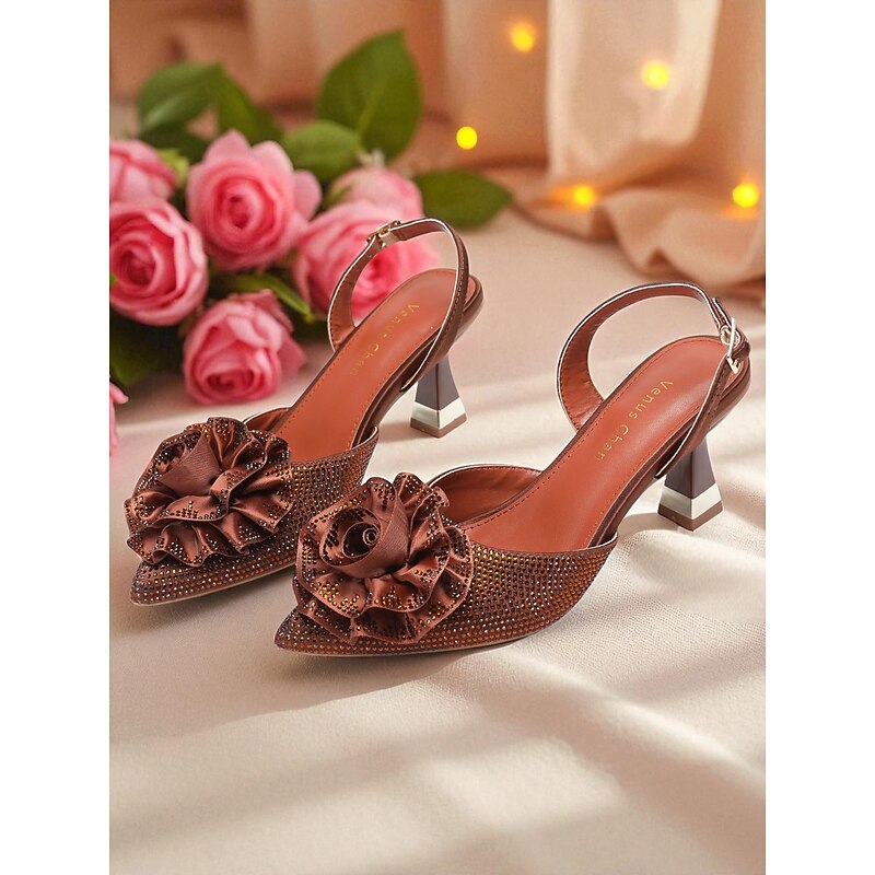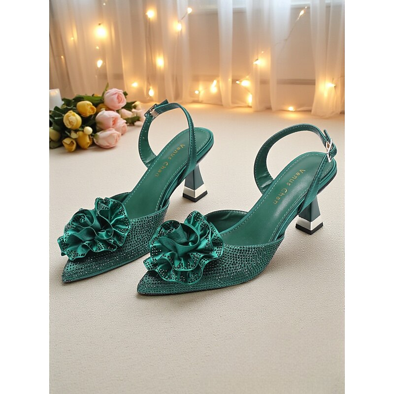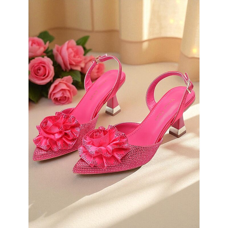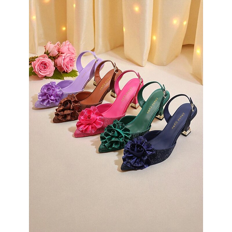 Women's Purple Rhinestone Slingback Heels with Floral Decoration - Elegant Pointed Toe Pumps for Formal Events and Cocktail Parties 1