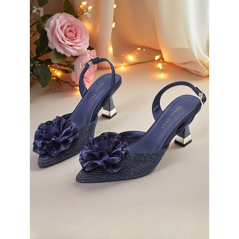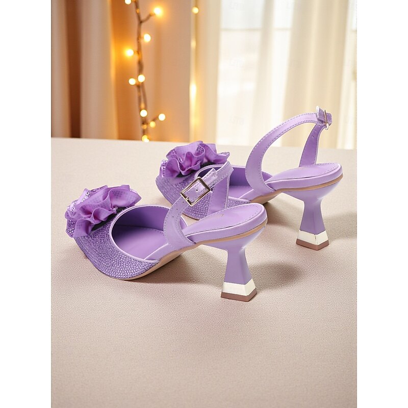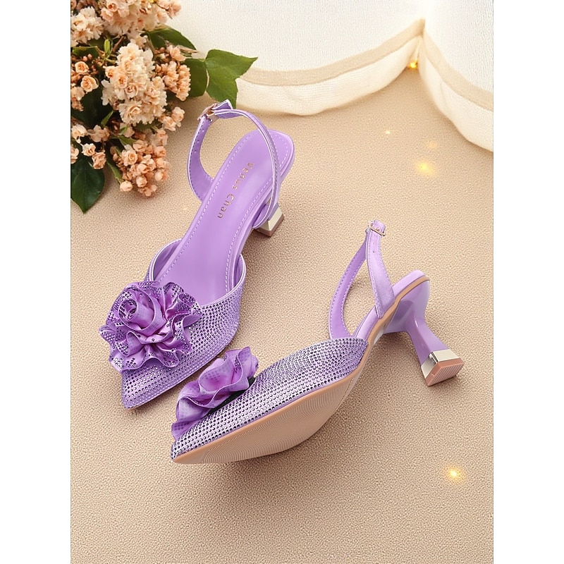 More information about Women's Purple Rhinestone Slingback Heels with Floral Decoration - Elegant Pointed Toe Pumps for Formal Events and Cocktail Parties