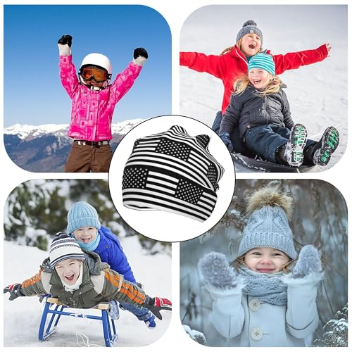 The Black American Flag Children Hip Hop Knitted Hat Kids Elastic Leisure Knit Cap Warm Sleep Beanies 3