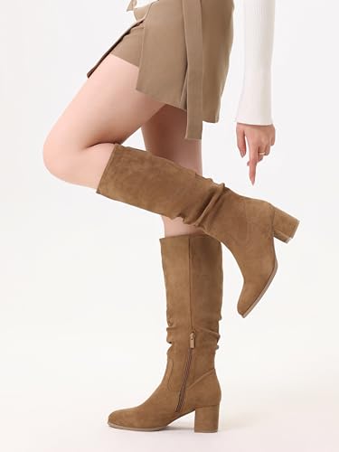 Shoe'N Tale Women's Knee High Boots Chunky Heel Pointed Toe Suede Slouch Winter Shoes with Side Zipper 5