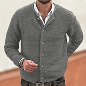 Men's Cardigan Sweater Cropped  Sweater Knit Sweater Ribbed Knit Regular Tops Pocket Buttons Plain Collarless Fashion Classic Vacation Daily Wear Clothing Apparel Fall Winter Black Navy Blue M L XL 12