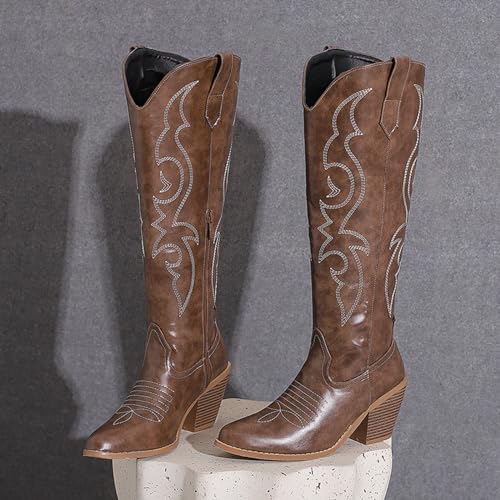 Cozivwaiy Embroidered Cowboy Boots For Women Chunky Stacked Heels Western Boot Pull on Cowgirl Boots Vintage 7