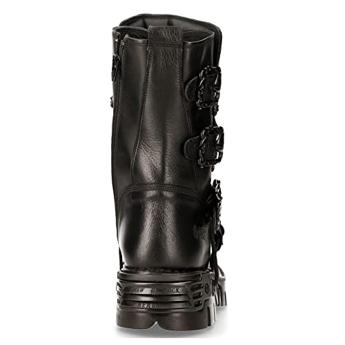 New Rock Women's Metallic 391 Black Reactor Skull Devil Goth Punk Leather Calf Boots 4