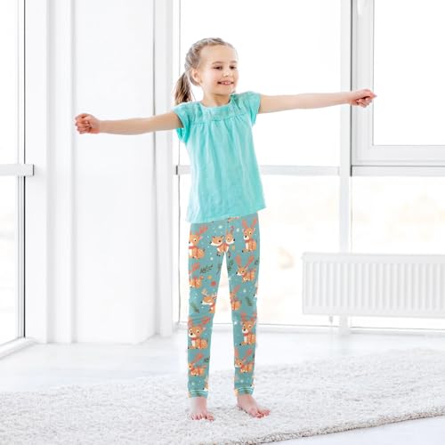 KLL Cute Reindeer Cartoon Deer with Snow Toddler Girls' Legging Casual High Waisted Activewear Exercise 6