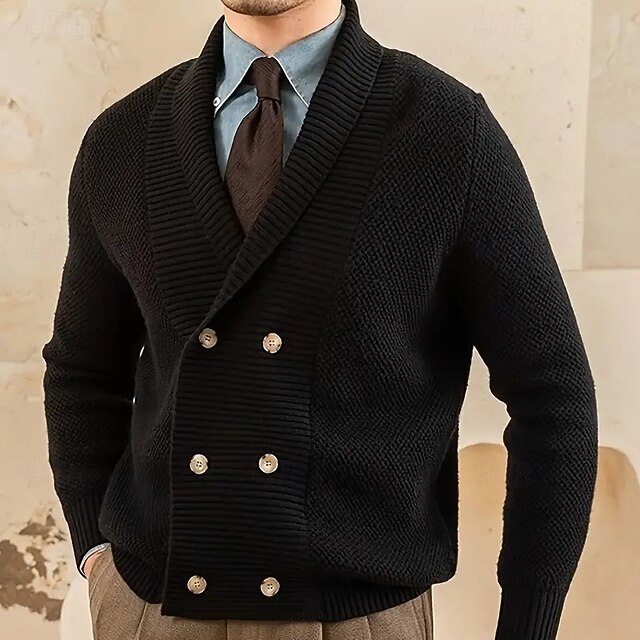 More information about Men's Dress Sweater Cardigan Sweater Knit Sweater Ribbed Knit Regular Tops Button Up Side Pockets Solid Color Lapel Fashion Classic Daily Wear Date Clothing Apparel Fall & Winter Black khaki M L XL