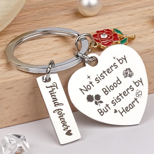 • [Meaningful Friendship Keychain] This keychain celebrates the special bond with a heartfelt engraving: “Not Sisters By Blood But Sisters By Heart”; “Friends Are The People Who Make Your Life Better By Just Being In It.” It is a touching gift for non-biological sisters who feel like true family