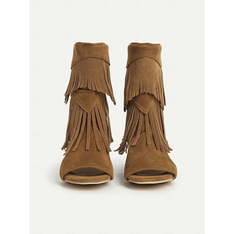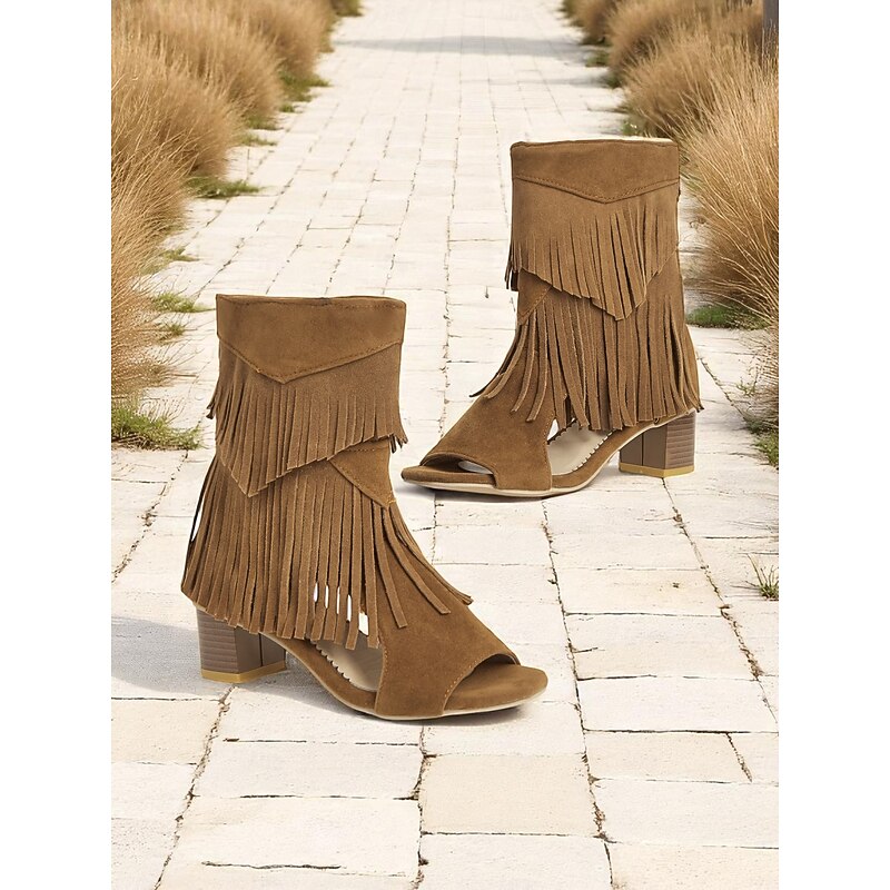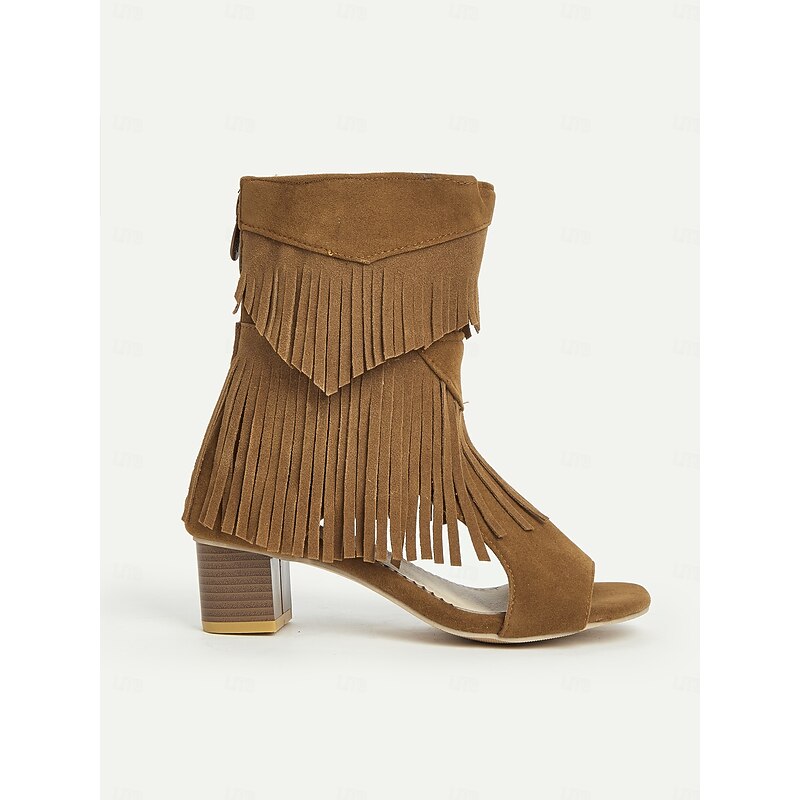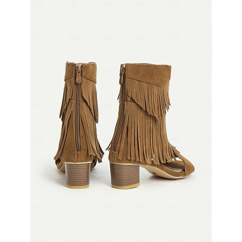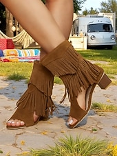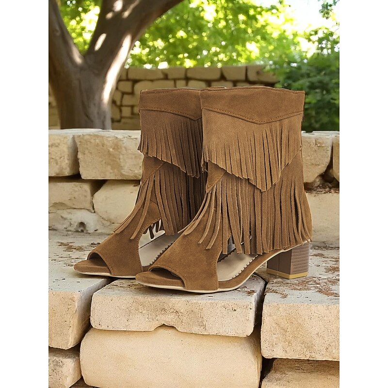 More information about Women's Brown Suede Fringe Gladiator Sandals with Block Heels – Boho Western Style Open-Toe Boots for Music Festivals, Summer Outfits, and Casual Wear