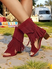 Highlights - Luxurious faux suede upper material - Stylish tassel embellishment - Comfortable synthetic leather lining - Chunky heel for added stability - Classic round toe shape - Durable rubber outsole - Perfect for the 2024 Boho Beach trend