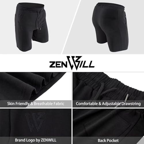 ZENWILL Mens Gym Running Shorts, Workout Athletic Bodybuilding Fitness Shorts with Zip Pockets 1