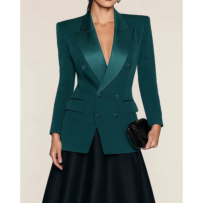 sought-after ! Women's Blazer Sport Coat Formal Wedding Guest Satin Elegant Long Sleeve Peak Lapel Double Breasted