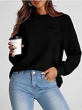 More information about Women's Sweatshirt Casual Street Dailywear Crew Neck Pocket Long Sleeve Black Fuchsia Green Gray Fall Winter