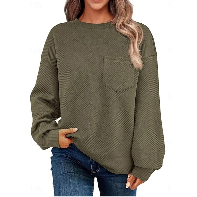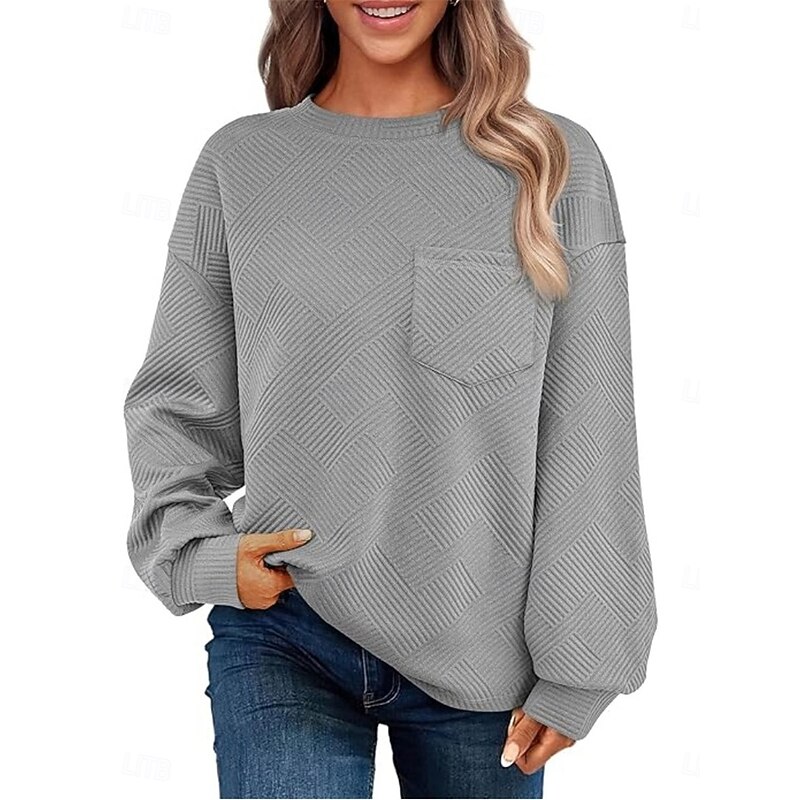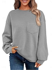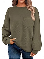 Highlights [Fabric and Style]: Crafted from high-quality polyester, this women's sweatshirt offers a cozy and micro-elastic fabric, ensuring comfort and durability for daily wear during fall and winter seasons. The design features a relaxed, regular fit with a classic crew neck and long sleeves. [Design Highlights]: The textured geometric pattern adds a touch of sophistication, while the chest pocket introduces a practical and trendy element to this casual sweatshirt. Ribbed cuffs enhance the snug feel, making it ideal for layering or wearing on its own. [Occasions]: Perfect for daily wear or street style, this versatile sweatshirt is a great choice for casual outings. Whether you're running errands or enjoying a relaxed weekend, it pairs effortlessly with jeans or casual trousers for an easy, stylish look. [Size Range]: Available in a wide range of sizes from S to 2XL, ensuring a great fit for various body types.