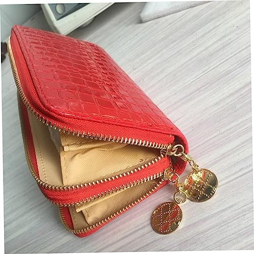 HOT ! Portable Pu Leather Long Zipper Wallet for Women Large Capacity Patent Wallet Red for Cash Cards Coins and Phones Stylish and Functional Design