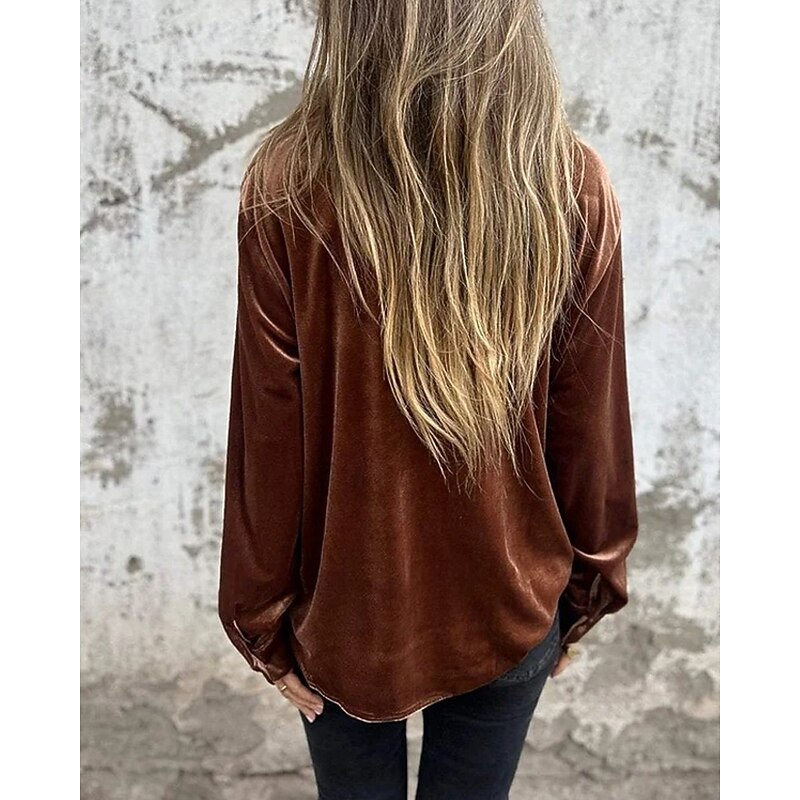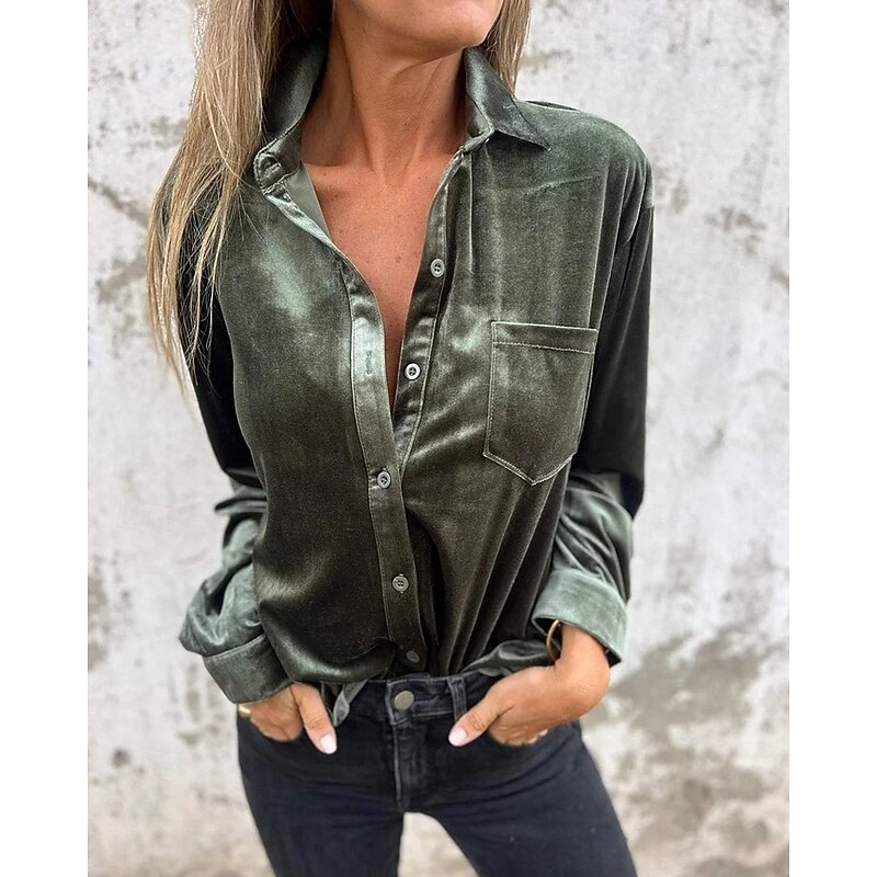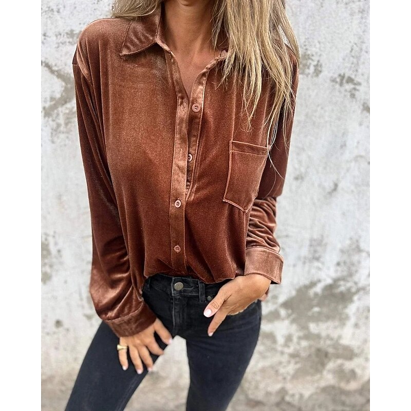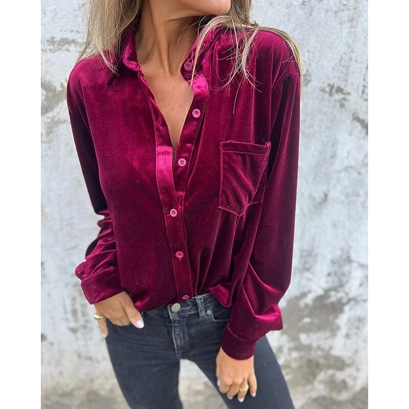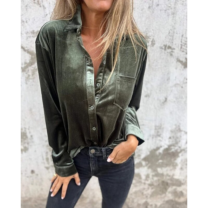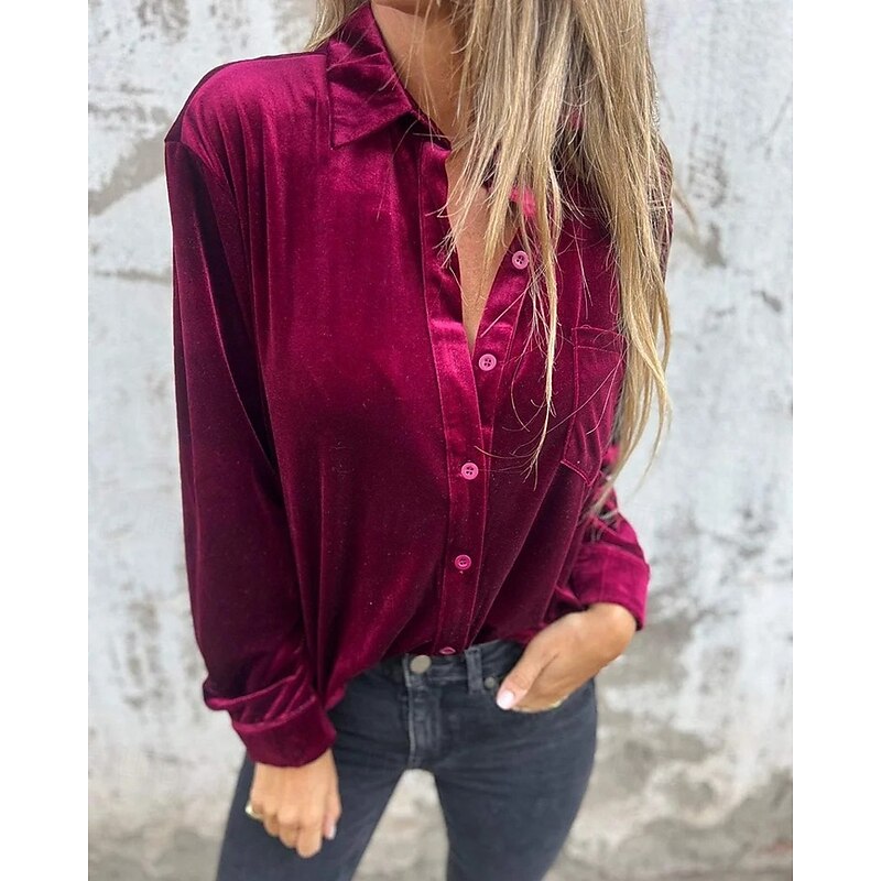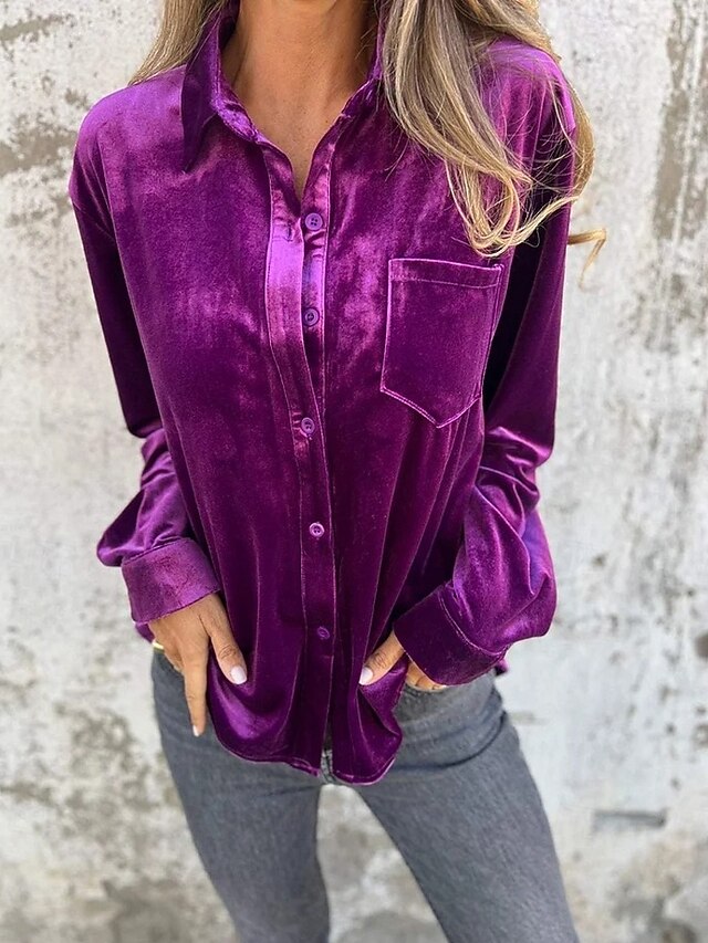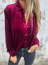 Highlights - Made with luxurious velvet and durable polyester fabrics - Features a stylish design with button accents - Long sleeves for added comfort and warmth - Versatile piece suitable for daily wear or work - Chic shirt collar neckline adds a sophisticated touch - Perfect for both spring and fall seasons - Specifically designed for women's fashion