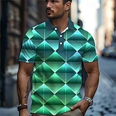 Men's Graphic Golf Shirt Short Sleeve Polo Shirts Collared Shirts Casual Beach Wear Vacation Wear Party Outfits Buttons 3D Print Summer Purple Green