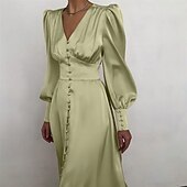More information about Women's Midi Dress Cocktail Dress Satin Dress Slip Dress Elegant Fashion Modern Outdoor Party Party Evening Wear Regular Fit Plain Long Sleeve V Neck Light Pink Black White Light Green Spring Autumn