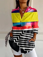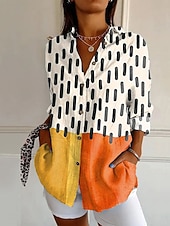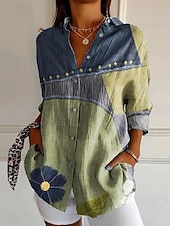 More information about Women's Shirt Graphic Geometric Vintage Daily Casual Long Sleeve Shirt Collar Regular Tops Daily Holiday Print Sage Green Yellow Brown Khaki Summer Spring
