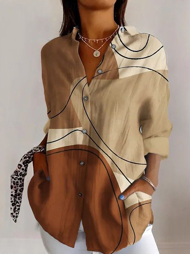 HOT ! Women's Shirt Graphic Geometric Vintage Daily Casual Long Sleeve Shirt Collar Regular Tops Daily Holiday Print Sage Green Yellow Brown Khaki Summer Spring