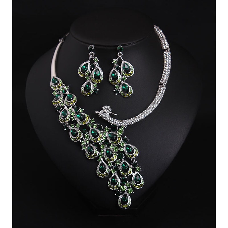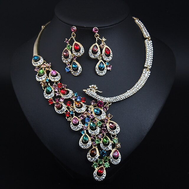 More information about Bridal Jewelry Sets 1 set Crystal Rhinestone Alloy 1 Necklace Earrings Women's Statement Colorful Cute Fancy Peacock irregular Jewelry Set For Party Wedding dress to impress