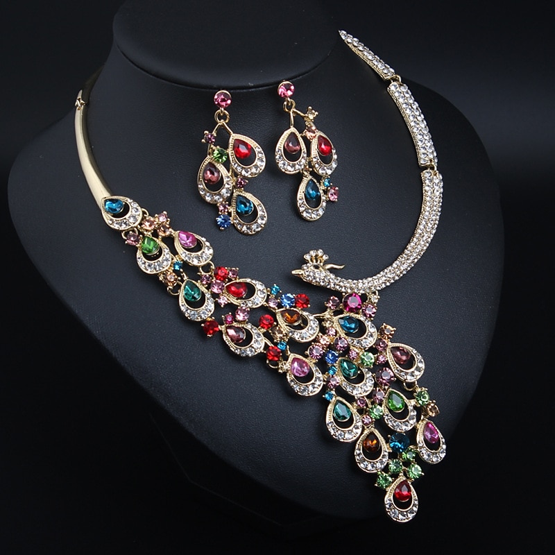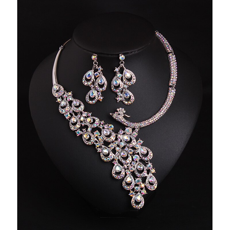 HOT ! Bridal Jewelry Sets 1 set Crystal Rhinestone Alloy 1 Necklace Earrings Women's Statement Colorful Cute Fancy Peacock irregular Jewelry Set For Party Wedding dress to impress