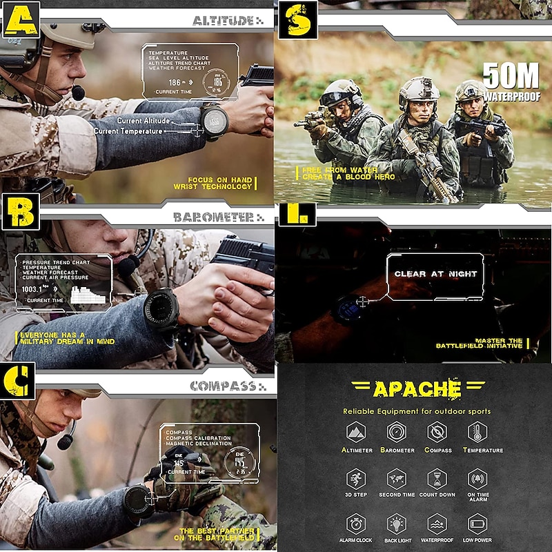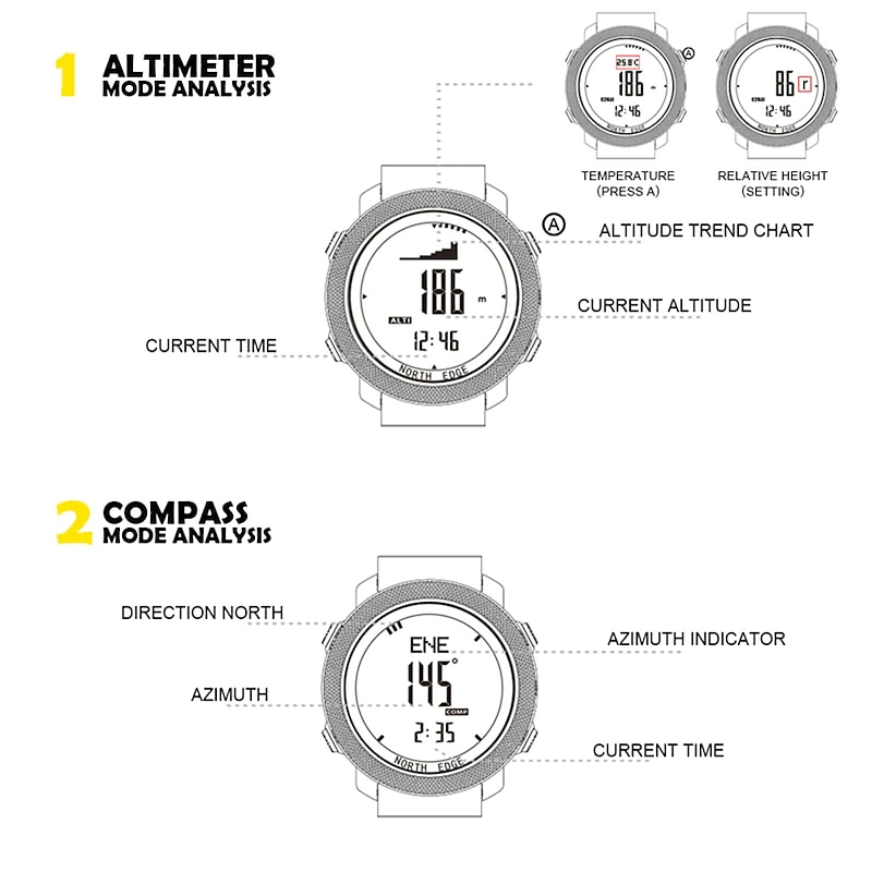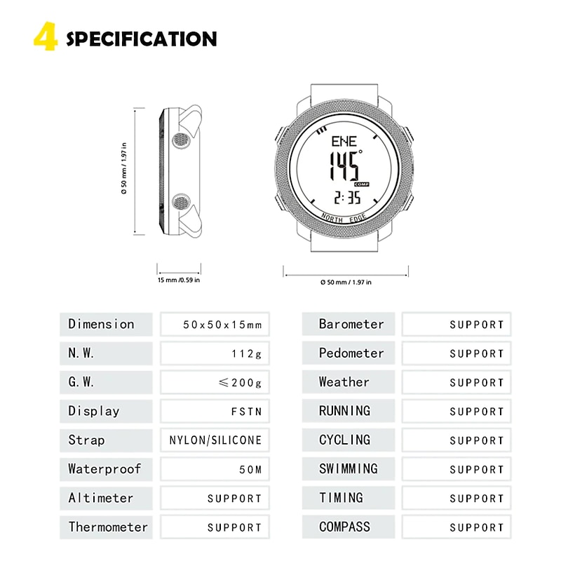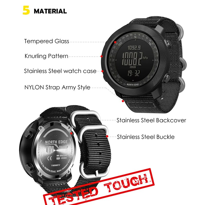 More information about NORTH EDGE Apache Men Digital Watches Waterproof 50M Running Swimming Men Tactical Sport Watch Outdoor Sports Survival Military Watches for Men, Compass, Pedometer Calories