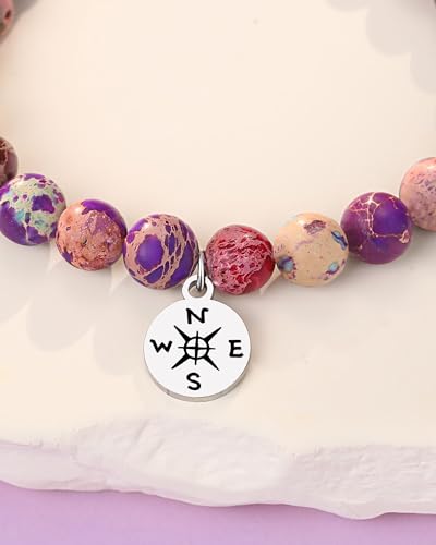 Natural Colorful Stone Ajustable Compass Bracelet - 8th 5th Grade Kindergarten High School Graduation Gifts for Girls Friend Daughter Granddaughter Niece 7