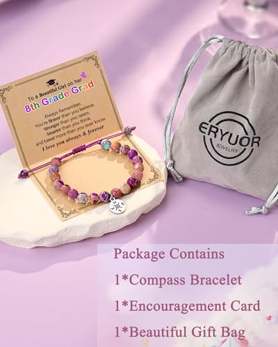 HOT ! Natural Colorful Stone Ajustable Compass Bracelet - 8th 5th Grade Kindergarten High School Graduation Gifts for Girls Friend Daughter Granddaughter Niece