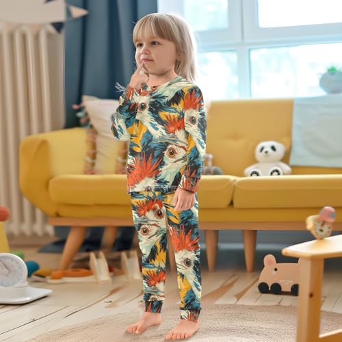 Pajama Sets Long Sleeve Bold Colorful Secretary Birds Soft Comfy Sleepwear 2 Piece PJS 3-8T 2