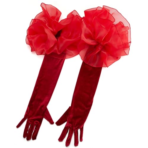 More information about Dark Red Opera Party Gloves Long Vintage Soft Satin Velvet Costume Formal with Polyester Ruffle Tulle Cuff Elbow Length Arm Sleeves Glove for Women Prom Banquet Dancing Dress Gift