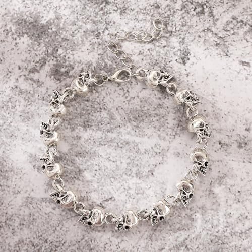 Gothic Silver/Gold Beaded Skull Bracelets for Men Women Punk, Goth Skulls Beads Skeleton Chain Bracelet Halloween Statement Jewelry Gift Accessories 5