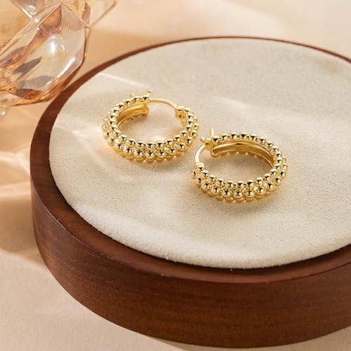 • [MADE TO FLATTER EVERY STYLE] These gold earrings for women feature a trendy round shape and polished glow. The chunky gold hoop earrings for women effortlessly complement any look, from romantic to minimalist, adding a chic touch to any outfit