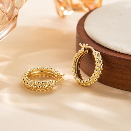 • [SMALL BUT MIGHTY] These chunky gold earrings for women deliver major impact through dense sculptural silhouettes. The 14 k gold plated hoop design commands attention, crafting subtly sophisticated gold hoop earrings for women