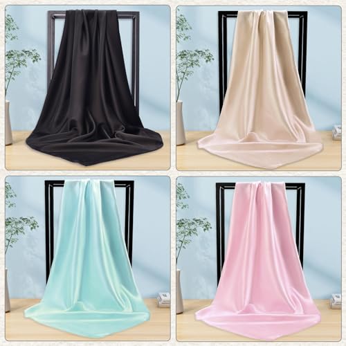 Fabric type: 100% PolyesterCare instructions: Hand Wash OnlyOrigin: Imported【Four color choices】You will receive satin square scarves in four colors: black,champagne,pink,and sky blue,size of the square scarf 27.5'' x 27.5''.The scarf color is bright and vivid,and the quantity is enough to meet your personal needs and show your personal charm.【Soft and light】Silk head scarf is made of 100% high-quality polyester,hair scarf is soft and plush to touch,light and breathable,silky and shiny,low-key luxury,lightweight scarf suitable for all kinds of hairstyles and outfits.【Multifunctional】As a fashionable matching item,square headband can be used for headscarf,headband,hair scarf,scarf,neck scarf,clothing accessories,hat accessories,bag accessories,etc.It embellishes your overall shape and sets off your elegant temperament.【Easy to clean】Silk bandanas are breathable and easy to clean with replace. Wash gently by hand at temperatures below 30°C and hang or lay flat to dry.【Wide Application】Satin head scarf is suitable for a variety of occasions,not only can be used in work and life,but also can be matched with embellishments for important events such as dances,birthday parties,dinners,weddings,travel,festivals,etc. Perfect for everyday use. first-class materials and excellent craftsmanship ensure long-lasting durability.