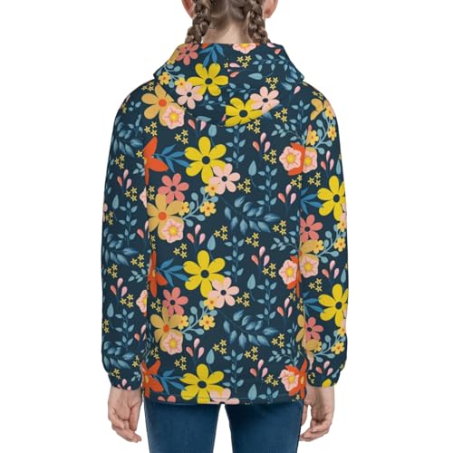 Blue Floral Kid Hoodies Boys Zip Up Sweatshirts Girls Pullover with Pocket 1