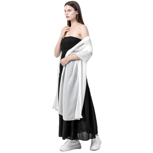 White Soild Shawl Scarves Chiffon Sheer Shawls and Wraps Womens Polyester Elegant Soft Silky Lightweight Long Mesh Scarf for Women Evening Dress Bridal Wedding Party Cover Up Accessories 7