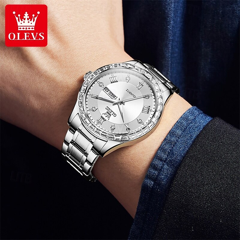 $38.99 - Olevs Brand Steel Band Men'S Business Watch Luminous Double Calendar Simple Quartz Watch Waterproof Sports Fashion Men'S Wristwatch Rhinestone 2025. Shop for cheap Quartz Watches online? Buy at lightinthebox.com on sale today!