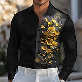 Men's Rose Floral / Flower Satin Shirt Dress Shirt Button Up Shirt Long Sleeve Fashion Casual Wedding Vacation Evening Party Summer Spring Turndown Collared Shirts 3D Print Yellow Red Blue Purple 11