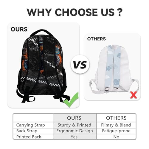HOT ! Custom School Backpack for Boys, 17 Inch Fashion Truck Backpacks for Kids, Black Lightweight Bookbag for Middle High School